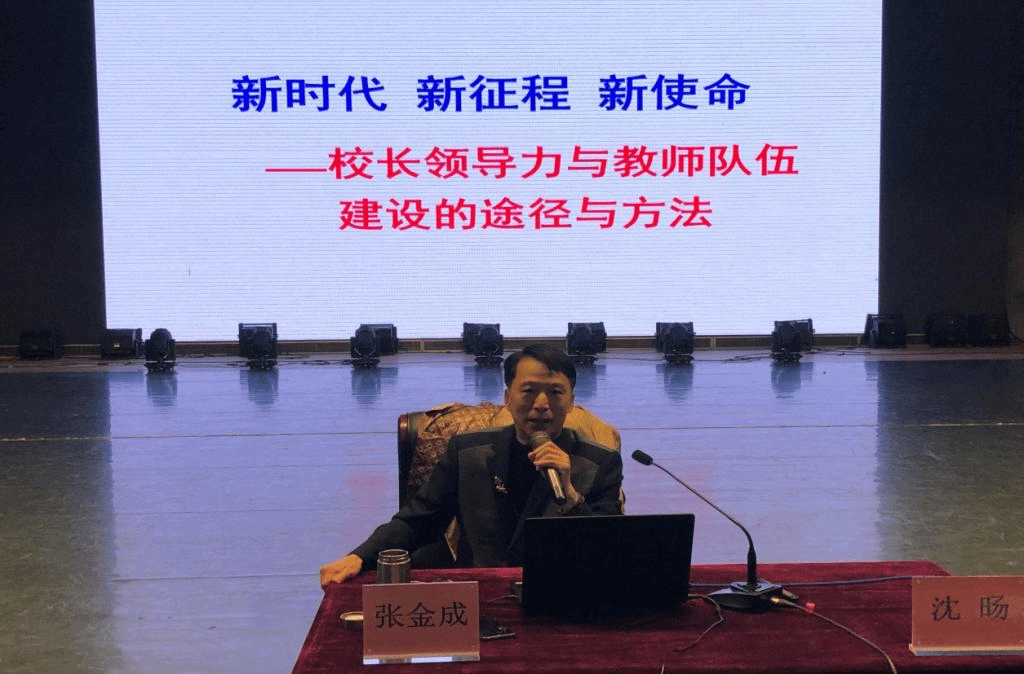 张金成校长首先通过对习近平总书记在庆祝改革四十年的讲话精神进行解读,引导学员们认识当下和未来的形势,以“315”概念传授了三力一心五阶梯管理要素。整个讲座过程中,张校长结合多年的教育教学管理经验,通过丰富的教育理论和教育案例,生动风趣地阐释了他对新时代管理者与教师应具备能力的认识,解读了校长领导力与教师队伍建设的途径与方法,让1000名学员深深的认识到作为管理者、骨干教师在“新时代新征程新使命”下的新思考:从管理走向治理、从教学走向学习、从课堂走向课程。丰富翔实的事例、条分缕析的结构、深刻精锐的观点,让学员们在激情之余更好地静下心来反思自己的教育教学。讲座接近尾声,张校长鼓励全体学员带着快乐的心情去看待教育,更好地生活、更好地工作、更好地做教育