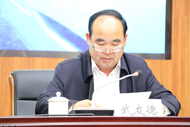 武友德副校长做动员讲话,他首先介绍了学校作为全国毕业生就业典型经验高校、全国深化创新创业教育改革示范高校、全国高等学校创业教育研究与实践先进单位、全国高校创业指导师培训基地,当前在大学生创新创业教育方面开展的工作以及取得的成绩,并对第四届“互联网+”大学生创新创业大赛中学校取得三项全国铜奖的好成绩予以肯定。武友德副校长强调,学校坚持把创新创业教育作为人才培养的重要抓手,将创新创业要求纳入人才培养过程,希望创新创业学院各中心,各学院,协同配合,办好此次大赛,以赛促教、以赛促学、以赛促创,做到教学与赛场紧密对接,进一步激发广大青年学子的创新创业热情,推动创新创业教育改革不断深入。最后,武友德副校长对我校师生创业团队提出了三点希望:一是要将青春梦、创新创业梦与中国梦紧密结合;二是要将思想政治教育与创新创业教育紧密结合;三是要将创新创业教育改革与高等教育综合改革紧密结合。并预祝各参赛团队在大赛中斩获佳绩。