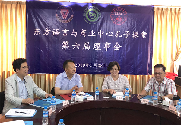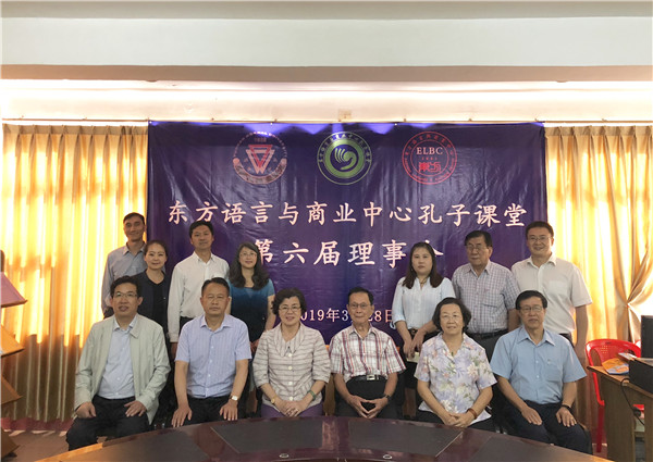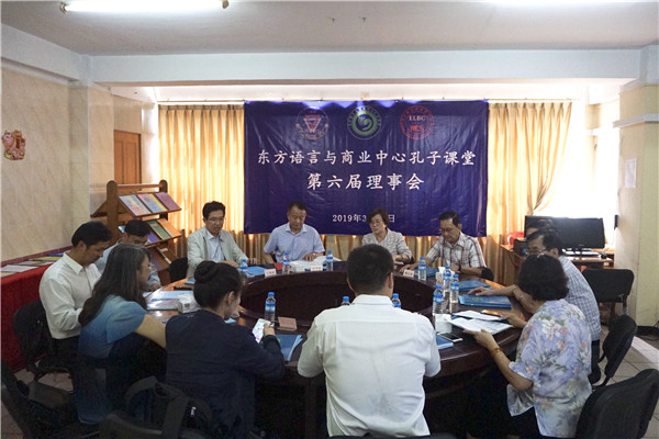 2019年3月28日下午,东方语言与商业中心孔子课堂(以下简称“东方孔子课堂”)第六届理事会在东方语言与商业中心(以下简称“东方学校”)顺利召开。云南师范大学副校长安学斌教授、华文学院院长王秀成教授、校长办公室牛元帅副主任、国际合作与交流处施银宝副处长、经济与管理学院邓雁副院长、职业技术教育学院杨吉华副院长、东方孔子课堂中方院长宋一杰作为中方理事参会;缅甸东方学校董事长曾圆香、副董事长兼财政部长戴良意、副董事长兼秘书长骆锡隆、副董事长兼秘书黄如信、校长黄爱玲、办公室主任黄碧杏作为缅方理事参会。会议由东方学校黄爱玲校长主持。