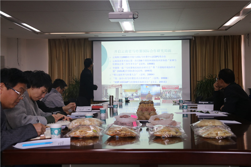 郝淑美副校长对科技厅领导的来访表示热烈欢迎,并对科技厅长期以来对我校及马铃薯科学研究院科学研究工作的支持和关注表示感谢。随后,马铃薯科学研究院执行副院长李灿辉教授从马铃薯作为我国主要粮食作物之一在粮食安全保障中的重要作用开始,介绍了云南师范大学马铃薯科学研究院的概况、云南师范大学马铃薯国际合作开展情况、马铃薯科学研究院40多年的基础研究工作及取得的丰硕成果及巨大的社会经济影响、目前研究院的学科设置、人才队伍和条件平台以及从七五科技攻关开始云南省科技厅对研究院的支持做了详细介绍。