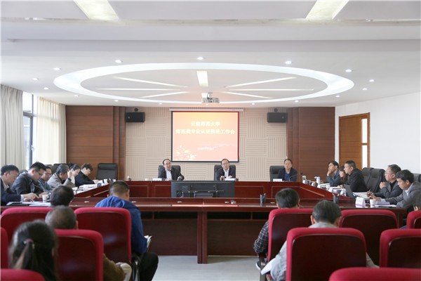 为了更好开展师范类专业认证各项工作,加强学校专业建设,提升人才培养质量,加快推进以教师教育为特色的高水平大学建设,2019年4月10日上午,学校在呈贡主校区办公楼340会议室召开云南师范大学师范类专业认证工作推进会。蒋永文校长、安学斌副校长、武友德副校长出席会议,校办、纪委办、校团委、发展研究中心、人事处、教务处、学生处、招生处、就业处、计财处、资产处、评估中心等职能部门负责人以及各实体学院院长、教学副院长参加会议。武友德副校长主持会议。