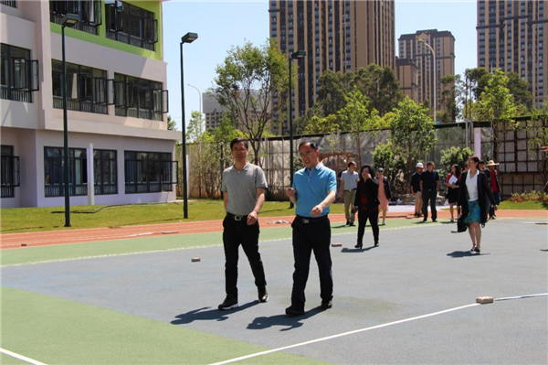 会议结束后,蒋永文校长到实验中学昆明湖校区调研,蒋校长先后分别到校区幼儿园、初中部施工现场、初中部前期过渡办学点实地察看和了解情况。在调研过程中,蒋校长向城投集团昆明湖项目负责人详细询问实验中学昆明湖校区建设工程相关情况,认真听取实验中学和基教集团办公室负责人就昆明湖校区筹建、办学工作的汇报。