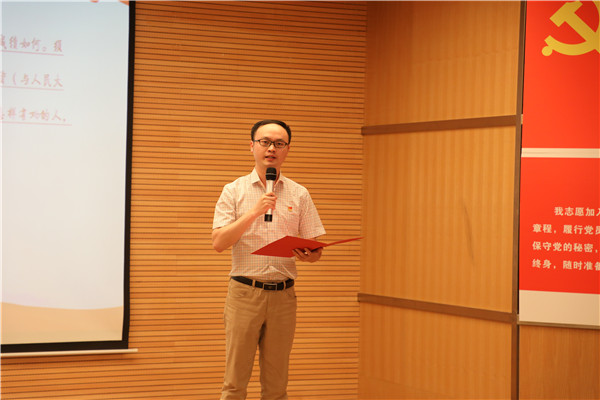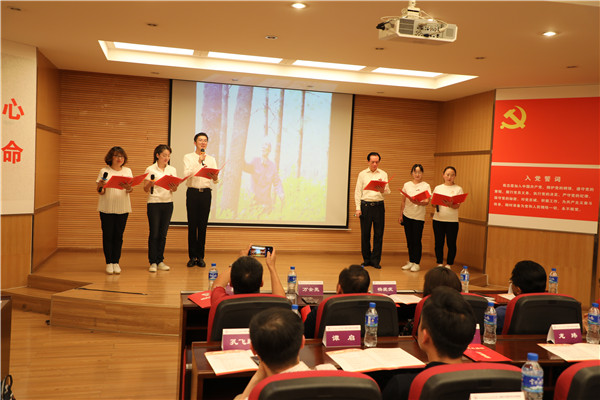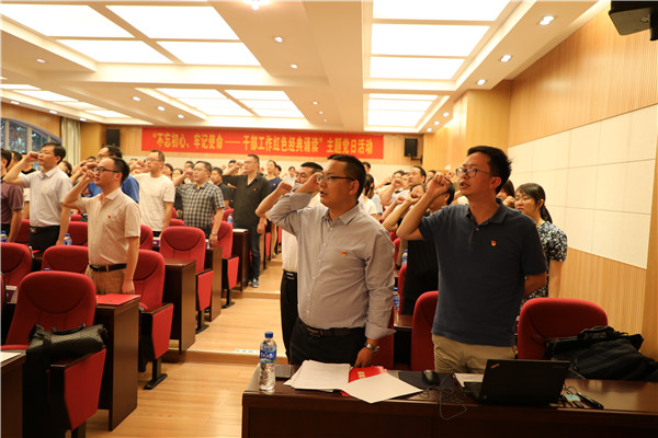 首先,进行的是重温入党誓词仪式,在省委高校工委组织部部长徐华同志带领下,110余名与会党员举起右手,一起重温入党誓词,体现出浓浓党味。