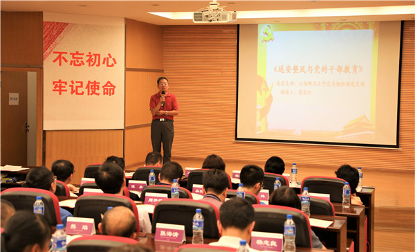 5月21日晚,省委组织部干部监督处党支部、省委高校工委组织部党支部、云南师范大学党委组织部党支部和部分省内高校党委组织部党支部在一二一联大校区报告厅内联合开展“不忘初心、牢记使命——干部工作红色经典诵读”主题党日活动。省委组织部干部监督处处长杨爱武同志,省委高校工委组织部部长徐华同志,省委组织部干部监督处正处级干部工作监督员赵国华同志,省委组织部干部监督处调研员万全亮同志、吴四锋同志,省委组织部干部监督处副处长、举报中心主任谭启同志等领导参加了活动。主题党日活动由云南师范大学党委组织部部长蔡金红同志主持。参加活动的有省委组织部干部监督处党支部、省委高校工委组织部党支部、云南师范大学党委组织部党支部全体党员和参加全省高校干部工作示范培训班的全体学员。