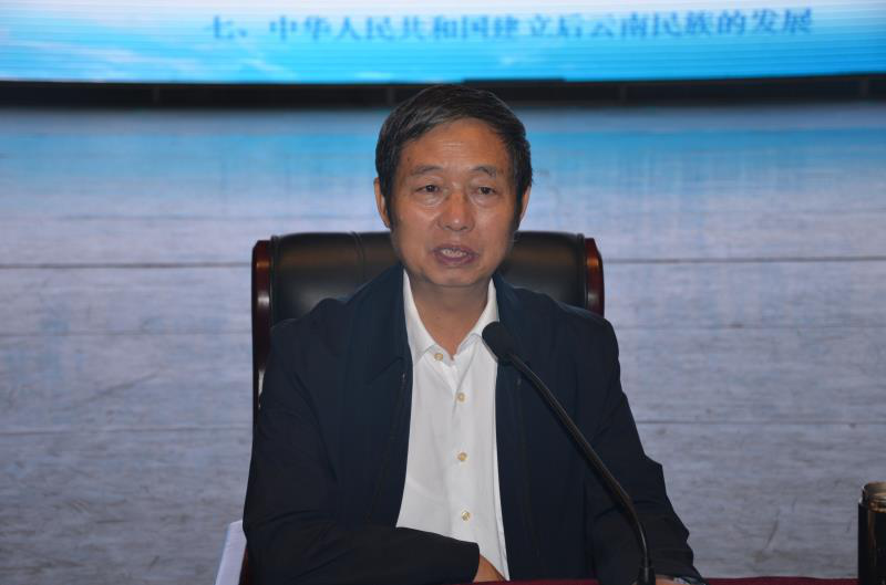 6月13日,云南省“万名校长培训计划”第二期名家讲座第30讲在昆明理工大学红土会堂举行。云南大学特聘教授、博士生导师王文光为第二期参训的1000名学员做“云南民族文化及其教育传承”专题讲座,讲座由我校哲学与政法学院张曙辉教授主持。