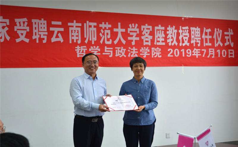 7月10日上午,我校在哲学与政法学院举行北京大学社会学系专家受聘云南师范大学客座教授聘任仪式暨云南师范大学社会学学科建设专家咨询会。北京大学社会学系主任张静教授,副主任周飞舟教授、刘能教授,社会工作专业主任马凤芝教授,社会学系黄美龄老师,我校校长蒋永文教授以及校长办公室、研究生部、哲学与政法学院党政领导班子成员和师生代表参加会议。