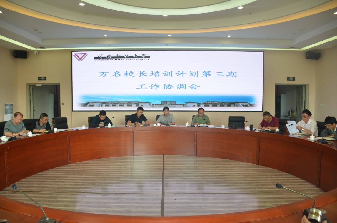 8月28日上午,云南省“万名校长培训计划”项目第三期工作协调会在我校呈贡主校区国家教师教育教学实验中心201会议室召开。校党委副书记张玮、副校长武友德,党办、校办、组织部、宣传部、校工会、人事处、教务处、计划财务处、信息管理处、保卫处、资产处、后勤保障处、图书馆、资产经营公司、本科教学质量监控与评估中心、校医院、云南西南联大干部教育学院负责人,项目办公室全体人员参加了会议。会议由张玮副书记主持。