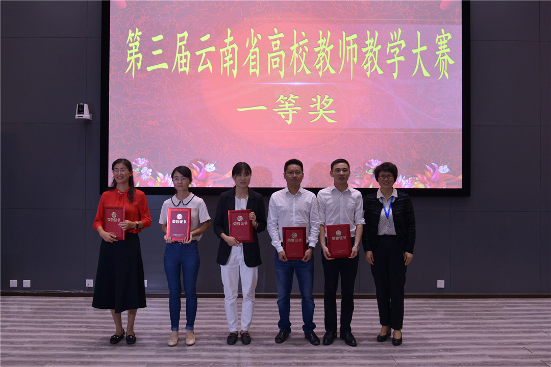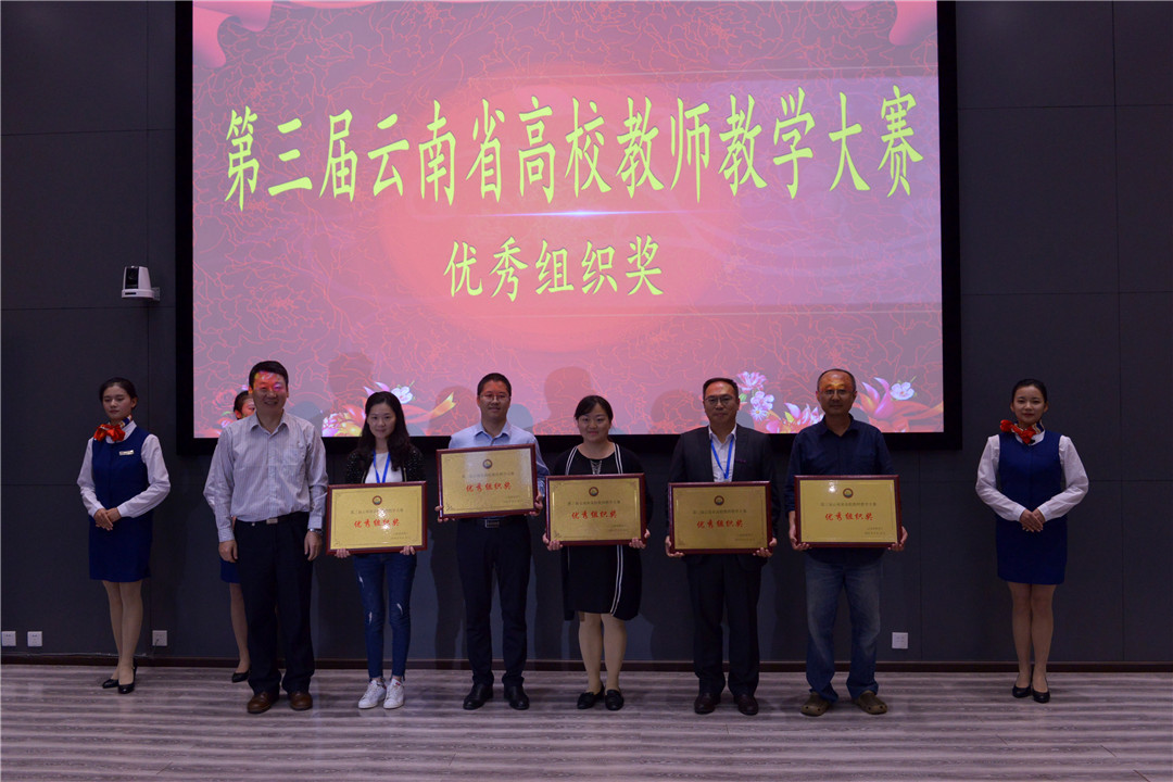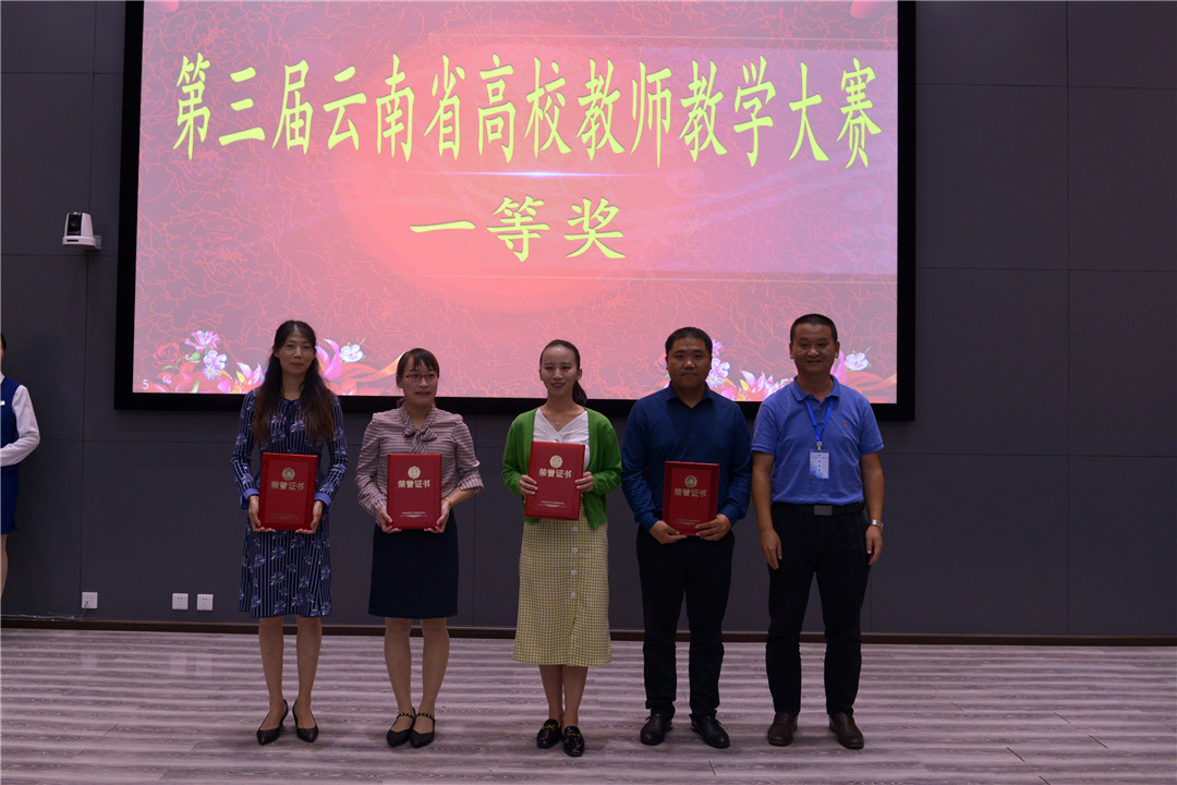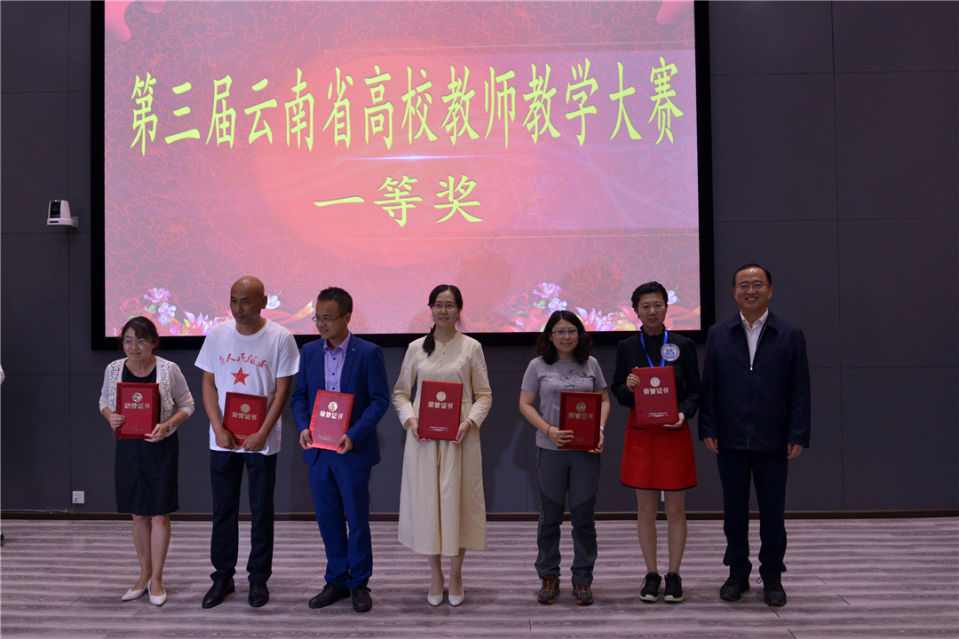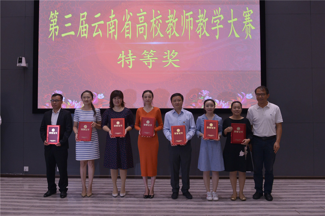 云南省教育厅高教处卢明处长宣读了获奖名单,与会领导为获奖单位和获奖教师颁奖。