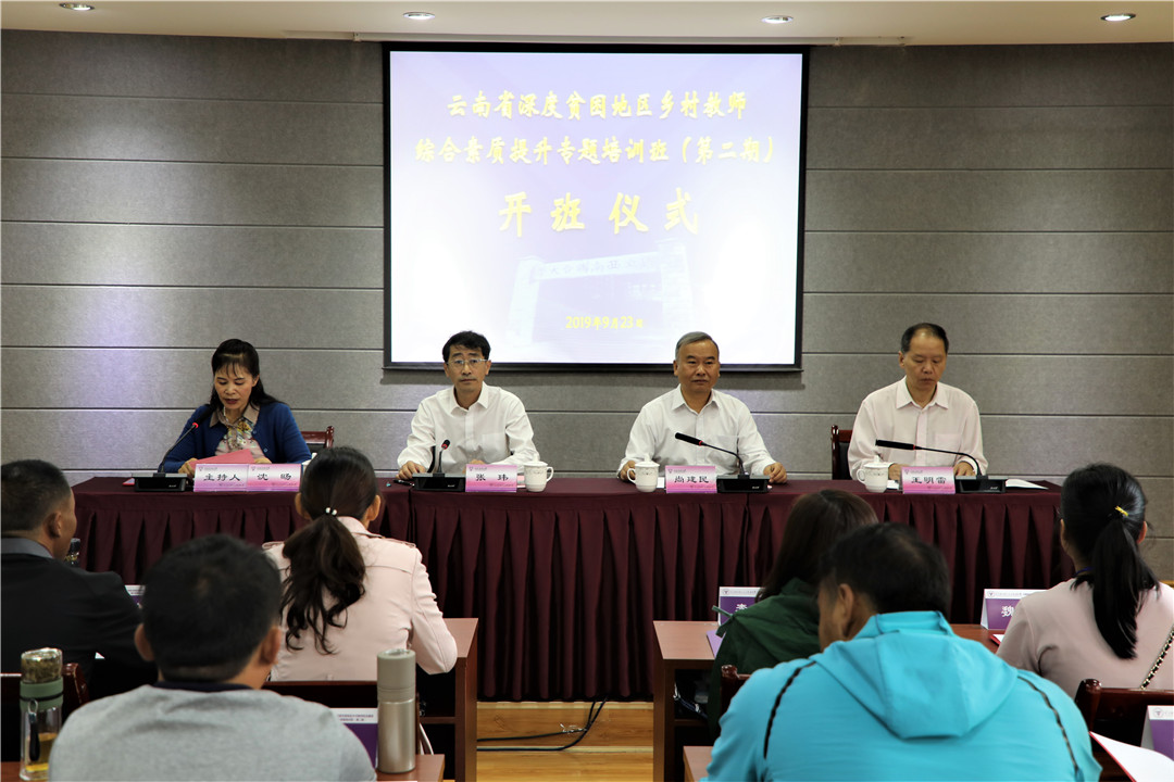 为深入贯彻落实精准扶贫基本方略,创新教育扶智扶贫模式,由云南省总工会、云南省教育厅主办,云南省教育卫生科研工会、云南西南联大干部教育学院合作组织实施的“云南省深度贫困地区乡村教师综合素质提升专题培训班(第二期)”,于9月23日上午在一二一西南联大校区明达楼406报告厅举行开班仪式,省总工会党组成员、副主席尚建明,云南师范大学党委副书记张玮,省教育卫生科研工会经审会主任王明雷,来自怒江州、迪庆州、昭通市的100名学员参加了开班仪式。仪式由云南西南联大干部教育学院专职副院长沈旸主持。