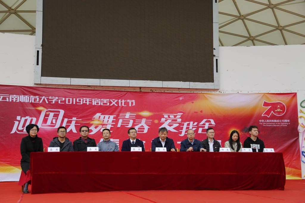 2019年9月26日下午,云南师范大学2019年宿舍文化节“迎国庆、舞青春、爱我舍”集体操大赛在呈贡校区东区贝壳广场举办。比赛由云南师范大学主办,校党委宣传部、研究生工作部、学生处、校团委、保卫处、后勤保障服务中心、各学院等单位承办。校党委副书记李宏、副校长牛治亮以及学校党委宣传部、研究生部、学生处、保卫处、后勤保障服务中心等部门负责人观看了比赛。比赛评委是我校体育学院万志红老师、音乐与舞蹈学院惠超老师、学生工作部杨进勐老师。