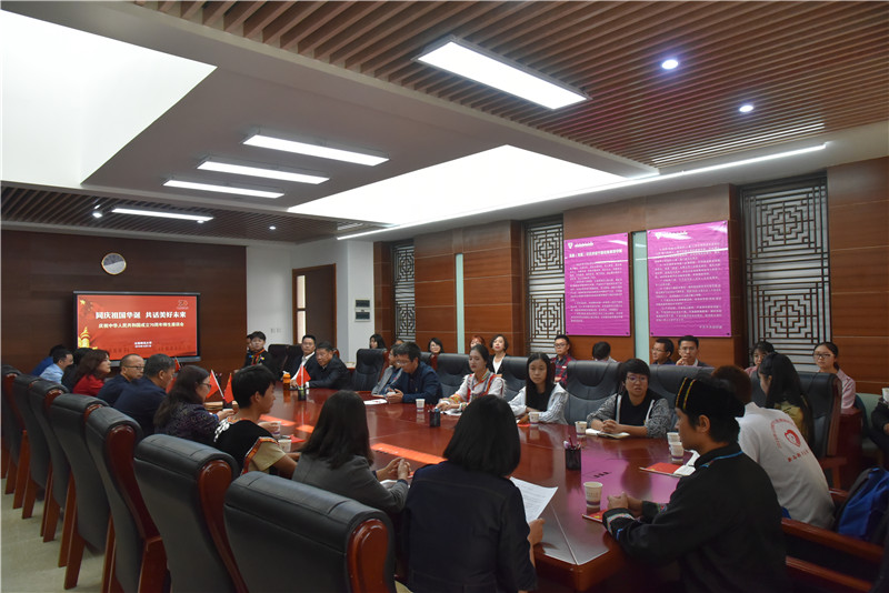 李宏副书记表示,聆听了中共中央总书记、国家主席、中央军委主席习近平发表的重要讲话,深感自豪,倍受鼓舞,振奋人心,催人奋进。中华人民共和国的成立,是划时代的伟大历史事件,是一部感天动地的70年奋斗史诗。中国共产党筚路蓝缕,披荆斩棘,带领中国人民一路向前,成就甚为辉煌,经验弥足珍贵。举行师生座谈会,就是一起畅谈聆听重要讲话的切身感受,同庆祖国华诞,凝聚发展力量。