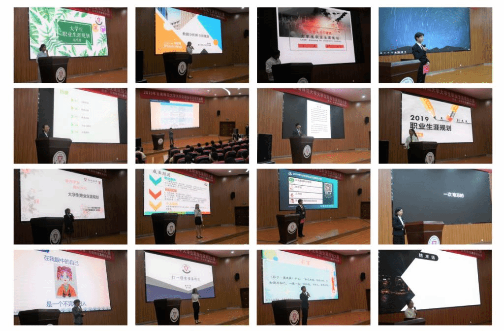 经过前期的学院初赛和学校复赛阶段层层角逐,来自10个学院的16名同学进入到决赛阶段。决赛结合“个人职业生涯规划书”设计,分“个人PPT展示”和“评委提问”环节进行。16名参赛选手轮番上阵,每位参赛选手在五分钟“个人PPT展示”环节里从自我剖析、行业分析、职业定位、SWOT分析、备选方案、行动方案等方面结合个人实际做了详细分析,现场描绘了各自规划的职业彩图。参赛选手清晰的逻辑思维、独具特色的演讲风格充分展现了我校学生积极奋进、迎难而上的精神面貌和敢为人先的创新意识,引发了现场观众的强烈共鸣和阵阵掌声,也得到了评委老师的一致好评。各位评委老师对选手进行提问,并就选手们展示的职业发展规划提出了针对性的建议。