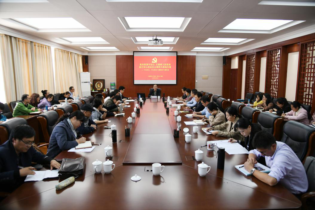 蒋永文同志强调,要在习近平新时代中国特色社会主义思想的指引下,以学生能否成才为出发点、以人民是否满意为度量衡、以事业是否发展为检验器,坚持把“不忘初心、牢记使命”主题教育激发出来的巨大热情和优良作风,转化为做好学校改革发展稳定各项工作的强大动力,把教育工作的初心使命融入到努力培养德智体美劳全面发展的社会主义建设者和接班人的实践中,为推动学校党的建设和改革发展稳定取得新的发展,为建设社会主义现代化强国作出新的更大贡献。
