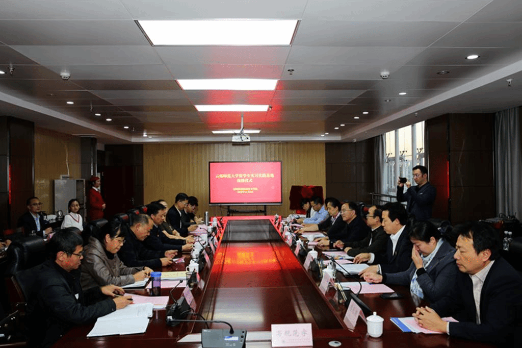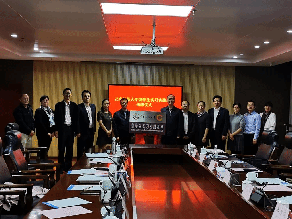 2019年11月6日,“云南师范大学留学生实习实践基地” 揭牌仪式在昆明铁道职业技术学院举行。云南师范大学校长蒋永文、副校长武友德,华文学院党委书记和雪莲、院长王秀成及学院班子成员,昆明铁道职业技术学院党委书记张志宏、院长李瑞林及学院班子成员,两个合作学院师生代表参加了仪式。