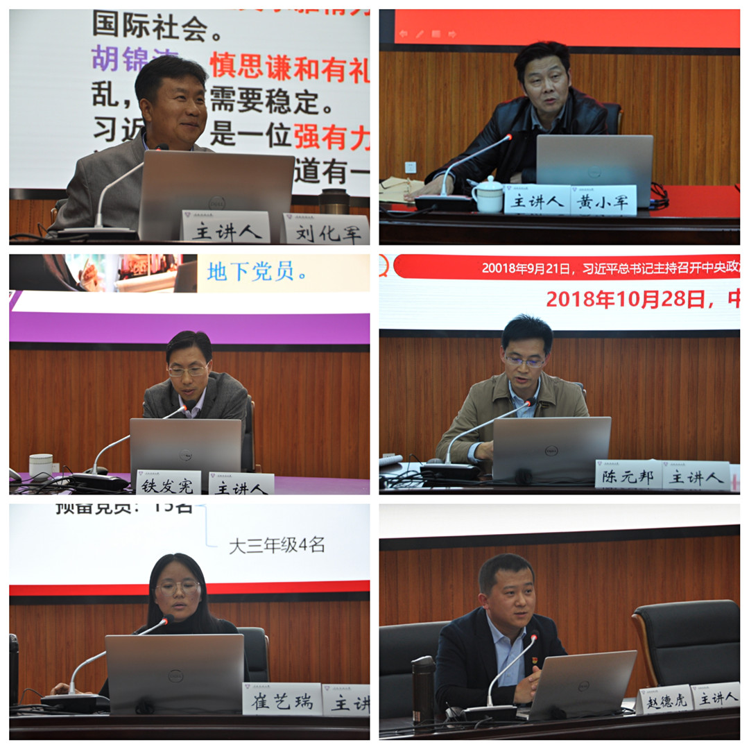 11月8-9日,分别由云南师范大学马克思主义学院副院长刘化军教授作题为《深刻认识和把握新时代中国共产党人的初心和使命》的专题辅导、云南省社会科学学院副院长黄小军教授作题为《深入学习习近平新时代中国特色社会主义思想》的专题辅导、云南西南联大干部教育学院副院长铁发宪同志作题为《西南联大与地下党组织》的专题辅导、校党委组织部副部长陈元邦同志作题为《解读<中国共产党支部工作条例(试行)>》的专题辅导,以及由教育学部教育学本科生党支部书记赵德虎和数学学院学生第一党支部书记崔艺瑞作党支部工作经验分享。