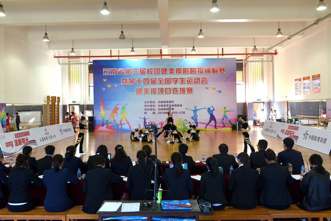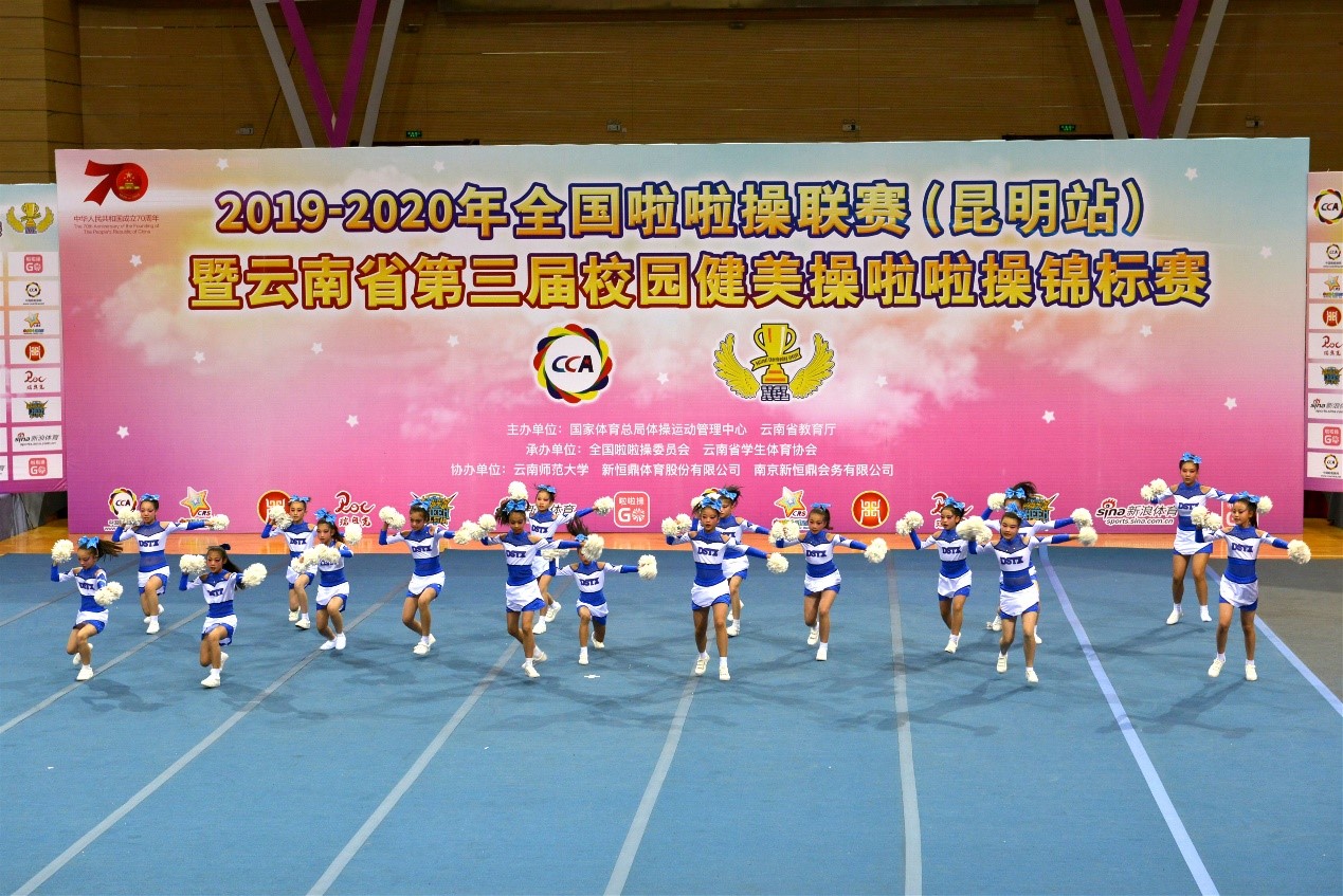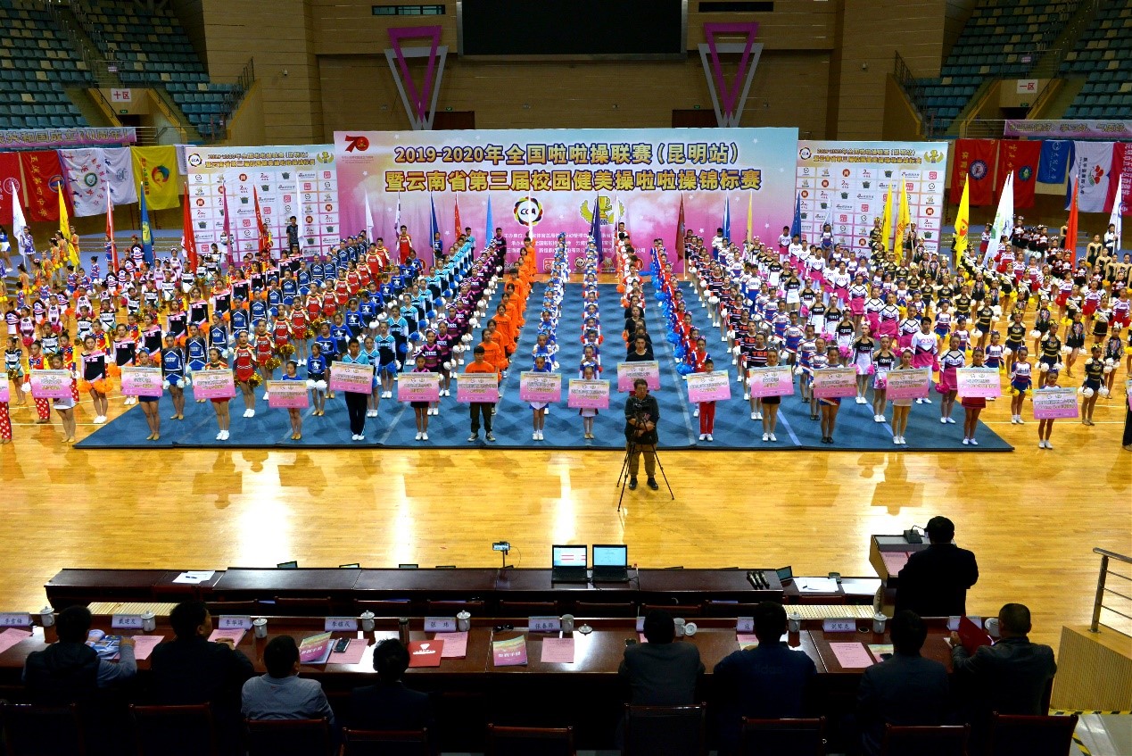 11月15日-17日,由国家体育总局体操运动管理中心、云南省教育厅主办,全国啦啦操委员会、云南省学生体育协会承办,云南师范大学等协办的2019-2020年全国啦啦操联赛(昆明站)暨云南省第三届校园健美操啦啦操锦标赛第十四届全国学生运动会健美操项目选拔赛在云南师范大学主体育馆隆重举行。本届大赛共有来自广东、陕西、四川、甘肃、云南等全国各地的160多支队伍,近4000名运动员参赛。