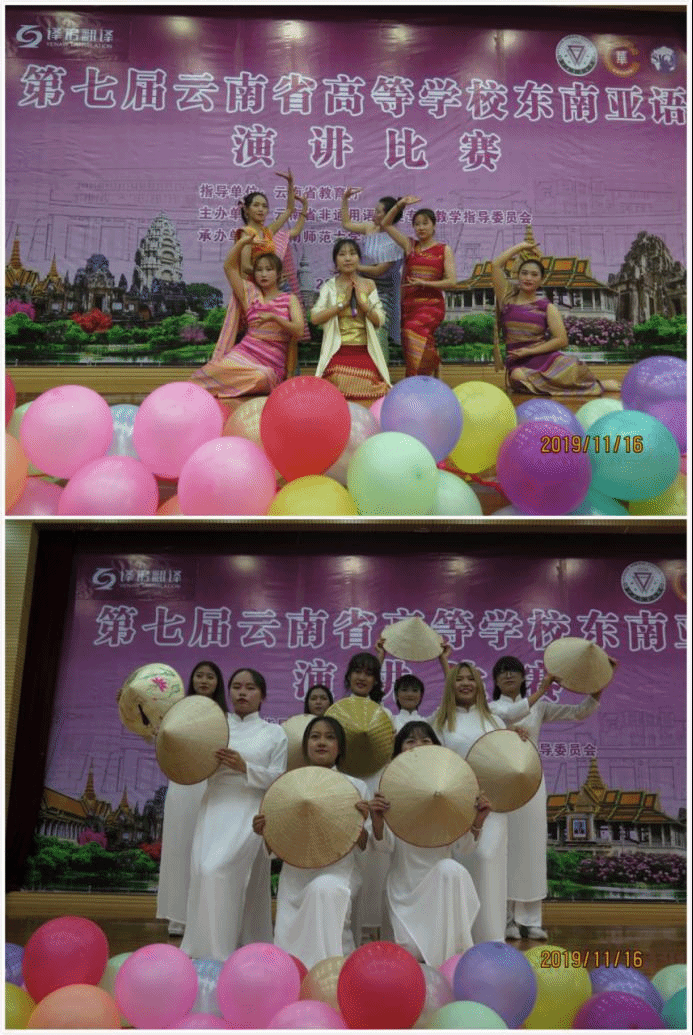 2019年11月16日,由云南省教育厅指导、云南省非通用语种类专业教学指导委员会主办、云南师范大学承办、昆明译诺翻译服务有限公司赞助的第七届云南省高等学校东南亚语演讲比赛在云南师范大学呈贡校区举行。老挝人民民主共和国驻昆明总领事馆领事MANISOUK CHIEMSISOULATH,缅甸联邦共和国驻昆明总领事馆领事U MIN CHAN MYAE,泰王国驻昆明总领事馆领事VORAPONG VADHANASINDHU,云南教育国际交流协会倪慧芳会长、杨光民副会长、葛雪萍顾问,云南省教育厅对外交流合作处龙微副处长,云南师范大学郝淑美副校长,云南师范大学云南华文学院王秀成院长,云南省非通用语指导委员会杨丽周、杨健、马丽亚等领导和嘉宾,以及来自全省30所高校的参赛师生出席了开、闭幕式和比赛。