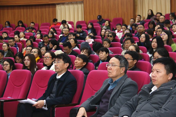 为加强我省高校党外知识分子思想政治工作,引导他们深入学习习近平新时代中国特色社会主义思想和中共十九届四中全会精神,了解和掌握国际国内形势,切实把思想和行动统一到中共中央的决策部署上来,2019年11月18日下午,省委高校工委在云南师范大学举办了在昆高校统一战线形势政策报告,邀请国防科技大学国际关系学院国际战略研究中心教授、南京大学亚太发展研究中心研究员、博士生导师崔建树作专题辅导。在昆18所高校400余名党外知识分子聆听了报告。