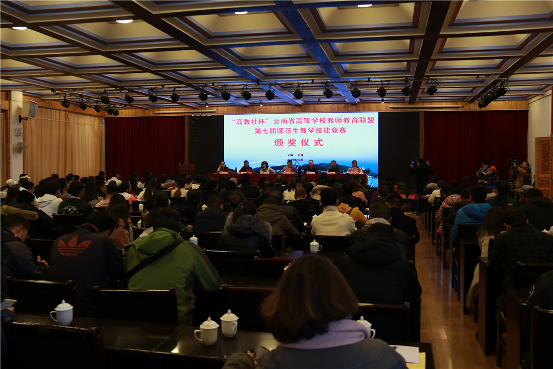 决赛于12月6日上午圆满完成。6日下午,举行了决赛颁奖典礼,颁奖典礼由大理大学教务处副处长周琬謦主持。大理大学副校长李小兵,联盟秘书长、云南师范大学教务处处长陈新,联盟常务副秘书长吴惠敏,大理大学教务处副处长范晓梅,大理大学教务处副处长周琬謦,大理下关一中初中部校长孙有红,大理四中校长杨鸿儒,大理一小校长那莹,联盟高校参赛选手、指导教师、评审专家、带队领导以及组委会相关工作人员等300余人参加了颁奖典礼。