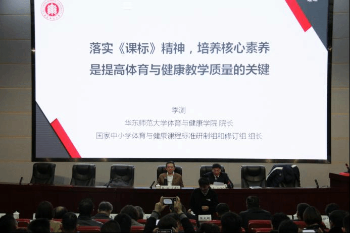 季浏教授就“落实《课标》精神,培养核心精神是提高体育与健康教学质量的关键”作了专题报告。季浏教授首先介绍了当下课程背景下党和国家对教育发展的新要求,要高度重视培养核心素养,把培养“立德树人”做为根本任务要求,培养全面发展的人。季浏教授还具体分析了运动能力、健康行为和体育品德三个体育与健康学科素养,体育教师要明确《课标》的龙头地位,充分理解《课标》和《教学大纲》的不同,解决好当前体育课存在的问题。最后季浏教授叮嘱大家要落实《课标》,认真学习、深刻理解、深入解读《课标》,从根本上解决体育教学中存在 “三无”问题,将“三无”体育课变为 “三有”体育课,最终成功促进学生身心健康、体魄强健、全面发展。