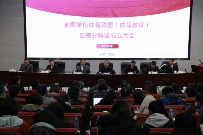 2019年12月13日上午,全国学校体育联盟(体育教育)云南分联盟成立大会在云南师范大学呈贡校区西边中心报告厅隆重举行。全国学校体育联盟(体育教育)主席、长江学者、华东师范大学体育与健康学院院长季浏教授;全国学校体育联盟(体育教育)副主席兼秘书长、青年长江学者、华东师范大学体育与健康学院党委书记汪晓赞教授;湖北分联盟主席、长江学者、华中师范大学王健教授;云南师范大学校长蒋永文教授;云南省教育厅体卫艺处徐忠祥处长;大连市体育局苗治文局长以及全国学校体育联盟(体育教育)各分联盟的主席、联络员;云南省学校体育教指委的部分委员;昆明市教育体育局的各位教研员和云南师范大学体育学院的师生代表参加了会议,本次会议由云南师范大学张玮副书记主持。