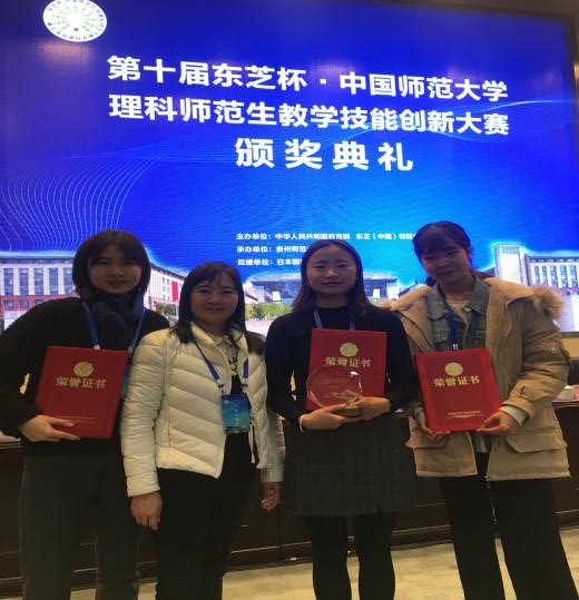 1224-27日,第十届东芝杯全国师范院校理科师范生教学技能创新大赛决赛在贵州师范大学举行,本次比赛由教育部及东芝(中国)有限公司主办,贵州师范大学承办。全国50所高校共选送150名本科生(数学、物理,化学各50名)参加大赛,3个比赛学科组分别设一等奖1名、二等奖3名、三等奖6名。我校数学学院李雪艳、物理与电子信息学院杨玉洁、化学化工学院赵欣旖三位同学代表学校参赛。
