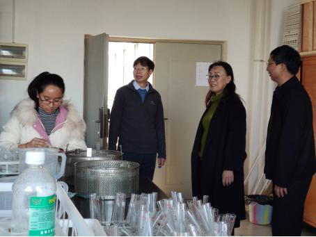 郝副校长对各实验室规章制度、用电安全、仪器设备及操作规程、实验设施及卫生环境等方面进行全面排查。