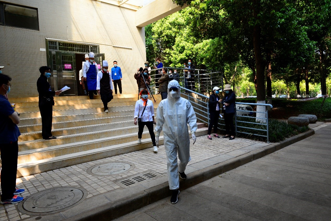 4月3日上午,由牛治亮副校长、郝淑美副校长担任总指挥,后勤保障服务中心、资产经营有限责任公司共同组织的“云南师范大学新型冠状病毒肺炎疫情防控后勤服务保障组春季学期开学及应急处置演练”在呈贡校区举行。呈贡区疾病预防控制中心主任孙继福,学校疫情防控办公室、校医院、保卫处、研究生工作部、学生处、后勤保障服务中心、资产经营有限责任公司等相关部门负责人现场观摩了演练。