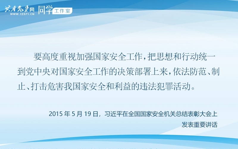 国家安全是安邦定国的重要基石,维护国家安全是全国各族人民根本利益所在。在第五个全民国家安全教育日来临之际,让我们重温习近平总书记在不同场合就维护、保障国家安全发表的一系列重要讲话,紧绷国家安全之弦、凝聚国家安全共识。