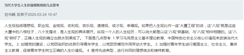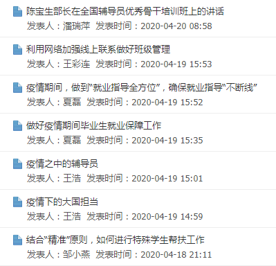 在全民战“疫”中,学生工作队伍作为高校疫情防控的基层力量,为守护学生的安全健康发挥了重要作用。特殊时期,我校辅导员将继续以“立德树人”为责任担当,因事而化、因时而进、因势而新,创新方式扎实做好疫情防控期间学生思想政治教育工作,充分凝练抗击疫情中的思政元素,化疫情危机为教育契机,共同汇聚起思政战“疫”的强大动能。