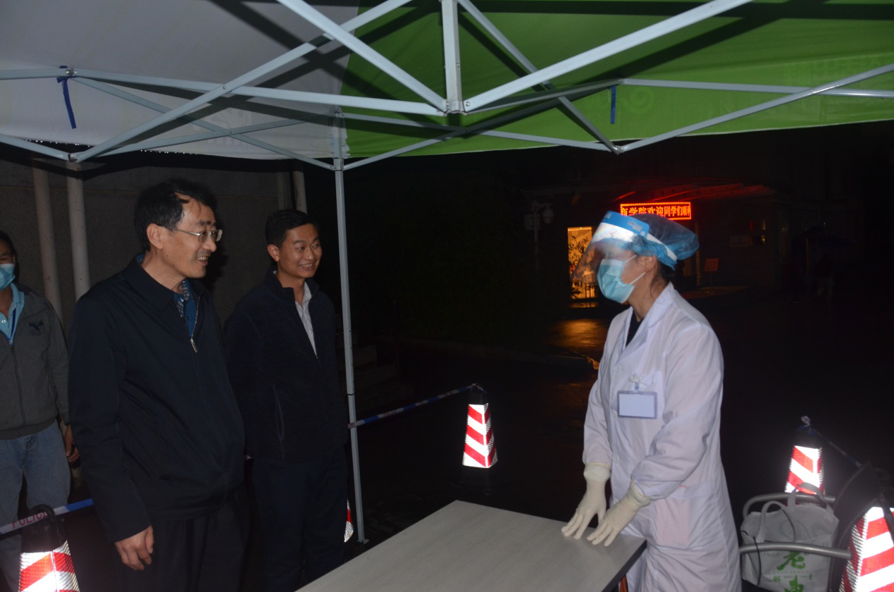 5月28日,一二一西南联大校区迎来了研究生返校。晚上8点,校党委张玮副书记到一二一西南联大校区检查指导学生返校工作,走访了泛亚商学院、职业技术教育学院、成人继续教育学院以及校区食堂,并与辅导员、班主任、医生、后勤人员等工作人员进行交流