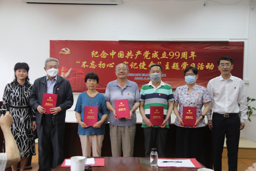 活动在全场人员齐唱中华人民共和国国歌声中拉开了帷幕,退休老党员杨文泽同志带领在场党员重温入党誓词。离退休工作处副处长李萍同志宣读了《表彰决定》。校党委副书记张玮同志向荣获2019年度“规范化建设达标党支部”、优秀党员、优秀党务工作者及“抗疫情 抒感怀”优秀作品获奖者颁发荣誉证书,张旭和张运贵两位党员作为受表彰人员代表作了交流发言。