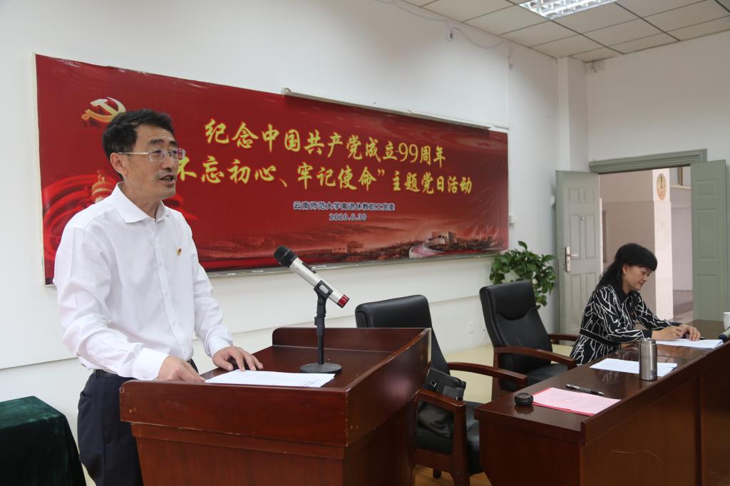 张玮副书记在活动中作了讲话。张副书记向受表彰的党支部、优秀党员、优秀党务工作者、优秀作品获奖者表示祝贺。他表示,在党的99岁生日到来之际举办“不忘初心、牢记使命”主题党日活动,其目的是回顾党的光辉历史,讴歌党的丰功伟绩,进一步激发党组织活力,增强老党员的政治荣誉感、组织归属感,增强“四个意识”、坚定“四个自信”、做到“两个维护”。同时,张副书记还向老党员们汇报了学校学习宣传贯彻习近平总书记考察西南联大旧址指示精神的基本情况。张副书记强调,老党员们要不忘初心、牢记使命,永葆爱党、忧党、兴党、护党的政治本色。“莫道桑榆晚,为霞尚满天”,希望老党员们要充分发挥经验优势、政治优势、威望优势,为党的事业增添正能量,为学校的改革发展,为学校加快高水平大学建设贡献余热。