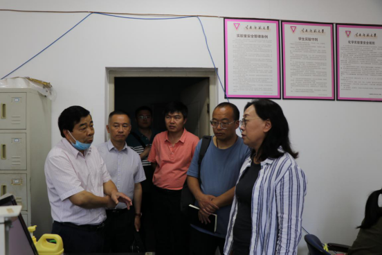 按照《教育部办公厅关于做好2020年度高等学校科研实验室安全工作的通知》(教科技厅函〔2020〕26号)《教育部科技司关于组织开展2020年度高等学校科研实验室安全自查自纠工作的通知》(教科技司〔2020〕133号)和云南省教育厅相关要求2020年7月28日下午,郝淑美副校长科研处李明处长、李灿松副处长、雷云涛老师一行到化学化工学院进行科研实验室安全检查,化学化工学院刘波书记、陈业高院长、谢生明副院长一行陪同检查。