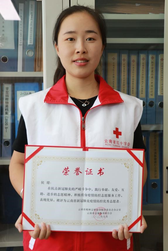 侯璟同学是一名学生党员,当看到云南省红十字会的边境防疫翻译志愿服务倡议时,不顾父母的反对,毫不犹豫地决定用所学专业为抗疫贡献一份力量。她在磨憨口岸参加了28天的志愿服务工作,克服了艰苦环境,心理畏惧,身体不适等困难,出色完成了边境防疫志愿者服务工作,充分发挥了青年学生党员在疫情防控第一线的先锋模范作用。正如侯璟所说,“相信这是我人生中一笔宝贵的财富,也会在未来不断督促我投身到志愿服务工作中去,争做优秀青年,树立党员先锋模范作用”。