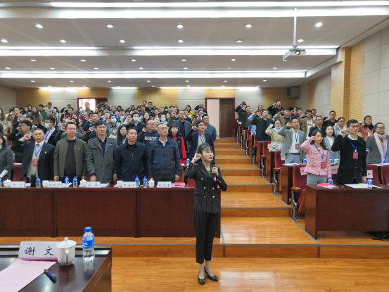 我校优秀辅导员何雁敏带领全体培训人员进行辅导员宣誓。