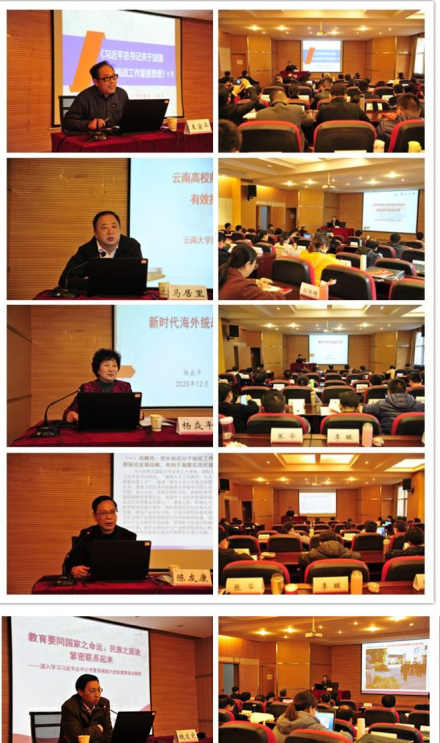 本次培训共安排了4场专题讲座、3次现场教学和1次分组讨论。讲座内容涵盖习近平总书记关于加强和改进统战工作的重要思想、新时代的海外统战工作、高校宗教工作、高校党外知识分子工作等4个专题,针对性比较强。在实践教学环节,学员们参观了昆明陆军讲武堂、云南起义纪念馆、南侨机工纪念馆和纪念碑、西南联大博物馆。在分组讨论环节,学员围绕“如何进一步做好海外统战工作、如何做好高校宗教工作”进行了热烈的讨论。结业仪式上,各小组代表分别发言,汇报了各小组讨论的情况,并就如何做好学校统战工作提出了很好的意见和建议。