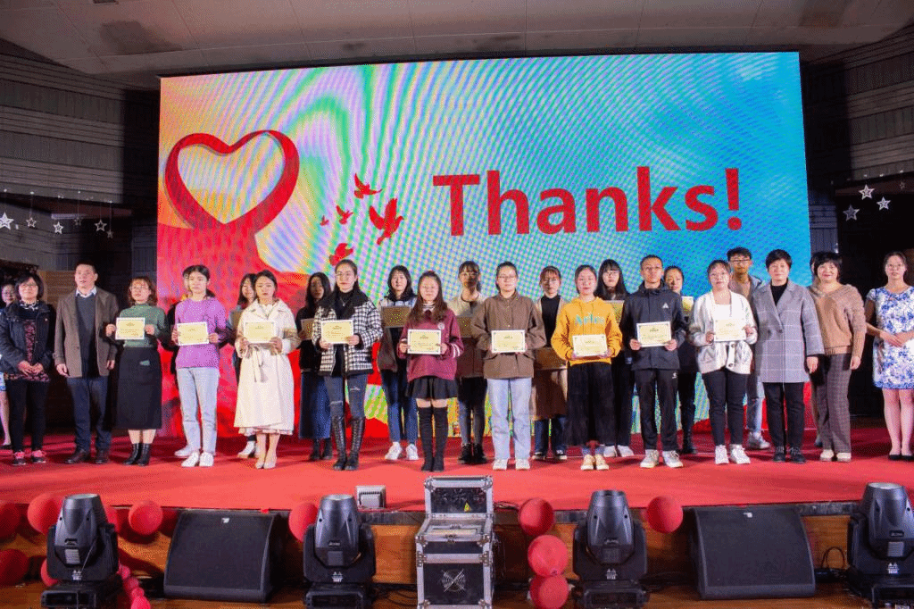 晚会现场还举行了抗疫志愿者颁奖仪式。刘宗立副校长为外国语学院“抗疫之星”志愿者现场颁发了荣誉证书。此前,外国语学院的志愿者们积极奔赴抗疫一线,参加疫情志愿服务,充分发挥了先锋模范作用。英泰双语专业的志愿者们积极参加翻译志愿工作,为抗击新冠肺炎疫情贡献自己的一份力量。2017级西班牙语班陈玥廷同学通过微信加入了中国防疫翻译志愿者小组,此外还有很多志愿者冲锋在家乡的防疫控疫一线,在村口、在社区进行体温检测和知识普及,与国家、人民站在一起,成为了大家学习的榜样。