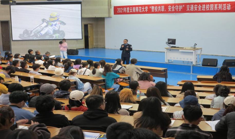 3月12日上午,“警校共联、安全守护交通安全宣传活动在呈贡校区汇文楼2区105报告厅举行,蔡金红副校长、保卫处副处长汪飞奇、昆明市公安局交通警察支队五大队四中队长皮序东、民警王磊、民警杨淑华、各学院学生代表300余人参加此次宣传活动