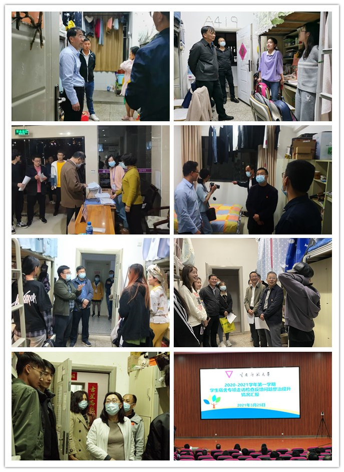 3月25日,学校2020-2021学年第二学期学生宿舍专项走访检查活动在呈贡校区及一二一西南联大校区同步举行,全体在家校领导,学校学工领导小组成员单位负责人,各学院(学部)领导班子成员、辅导员、班主任及相关部门工作人员参加了走访检查。