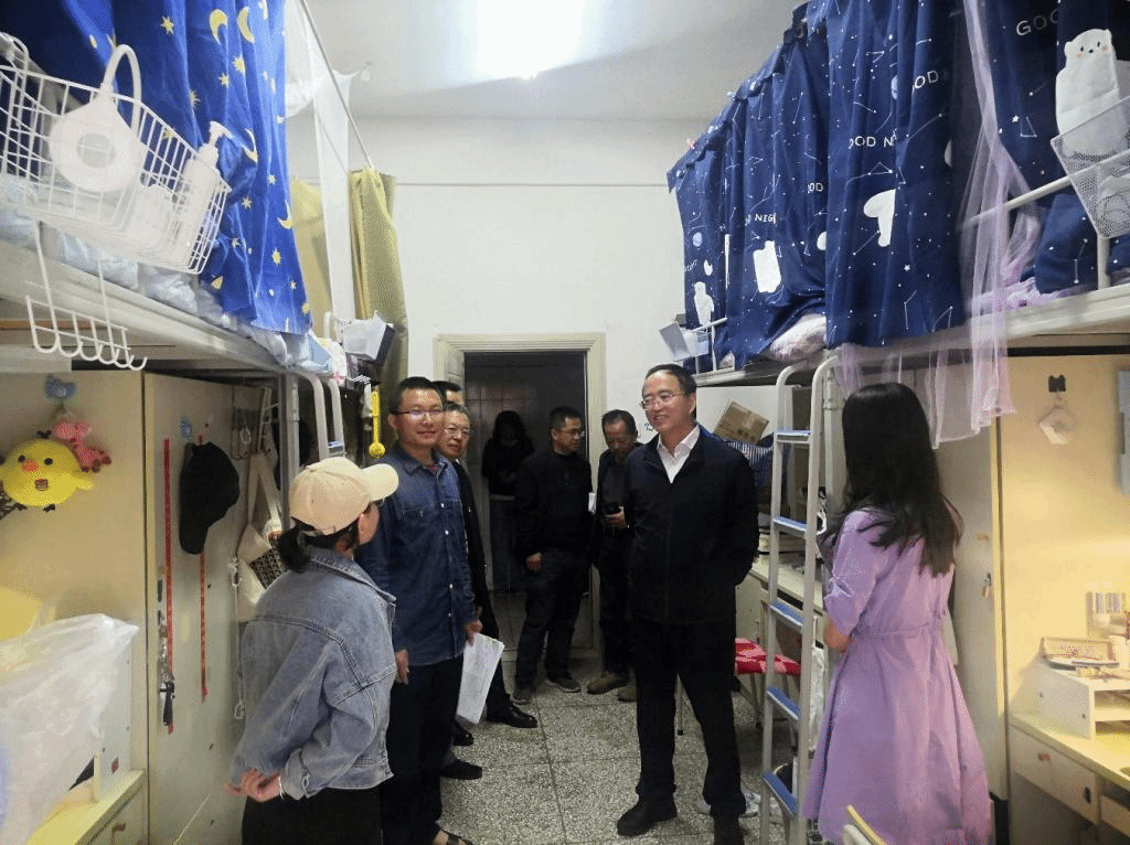 动员会结束后,全体参会人员以学院(学部)为单位,分10个大组21个小组,同步对全校学生宿舍进行走访检查。走访期间,校领导仔细查看了宿舍设施设备、环境卫生和消防安全等情况,与同学们进行了亲切交流,了解同学们的学习生活情况,询问其在生活和学习中存在的困难,听取同学们对学校教育教学、学习生活保障等方面的意见建议,希望同学们在学习中取得优异成绩的同时也能争优创先,努力营造出整洁、干净的宿舍环境,并叮嘱同学们要注意宿舍用电防火安全、强化安全意识和自我保护意识,遇到困难及时和辅导员、班主任沟通交流。学校领导还向宿舍值班员详细了解日常宿舍管理工作情况,勉励值班员持续学习,不断提升管理水平,为广大同学提供优质的住宿服务。