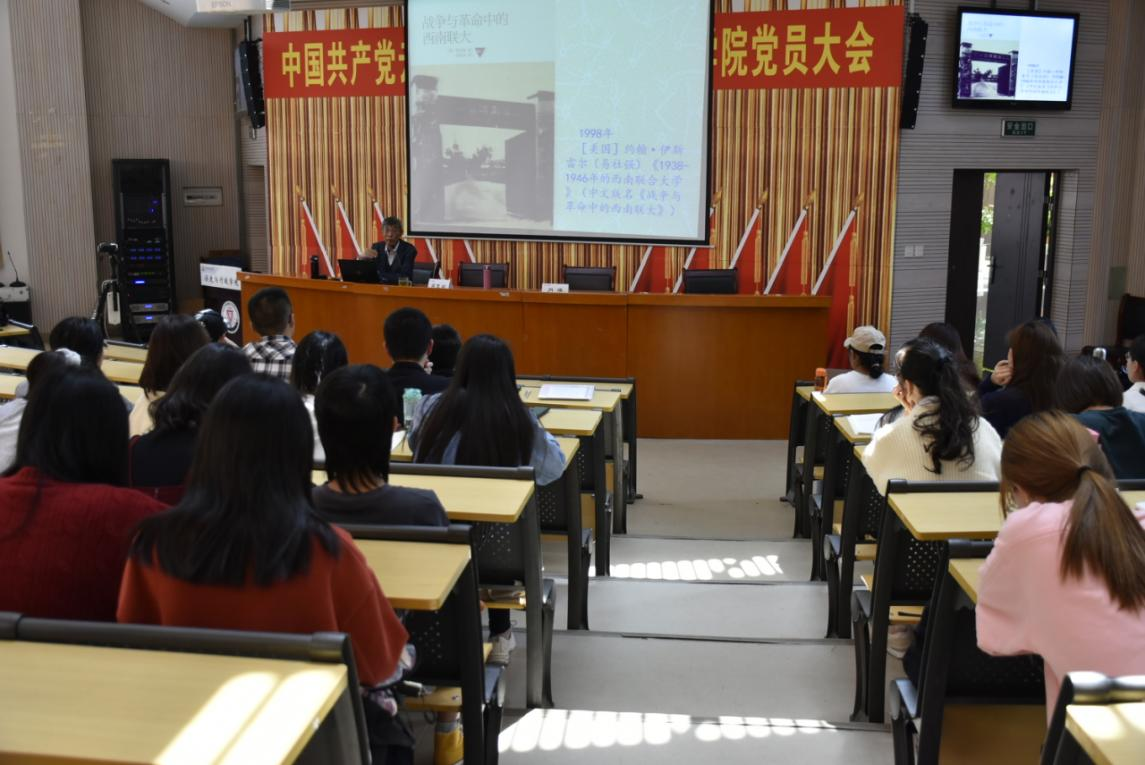闻黎明教授在讲座中介绍了西南联大的国内外相关研究。随后,分四个部分带大家一起回顾了西南联大西迁的历史:“何去何从”介绍西迁与否的争论,赞同的声音最终胜出;“难也易也”饱含着西迁之路上的种种艰辛,令人肃然起敬;“壮哉伟哉”是对西南联大师生们排除万难、居安资深的赞颂;最终的“念矣思矣”,则是从历史中寻找经验、汲取力量的鉴古知今。闻黎明教授指出,教育者亦或是被教育者,都应热爱祖国,如当年西迁路上的先辈,为国家的发展贡献自己力量。