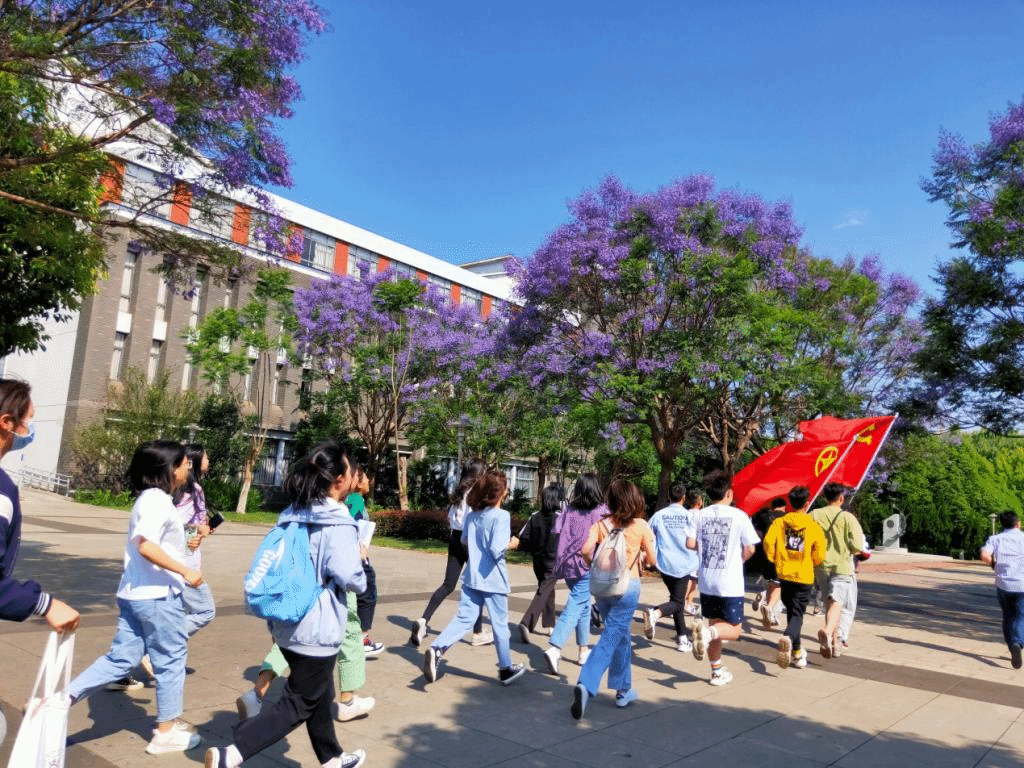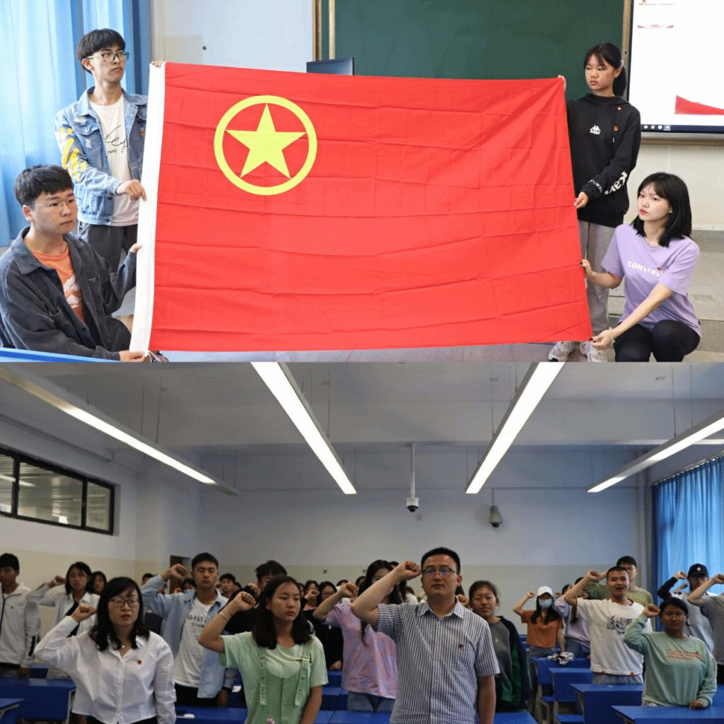 随后,在学部团委副书记王晓红领誓下,全体团员青年举起右拳,面向团旗,重温入团誓词,并沿学校红色地标开展青春健康跑活动。