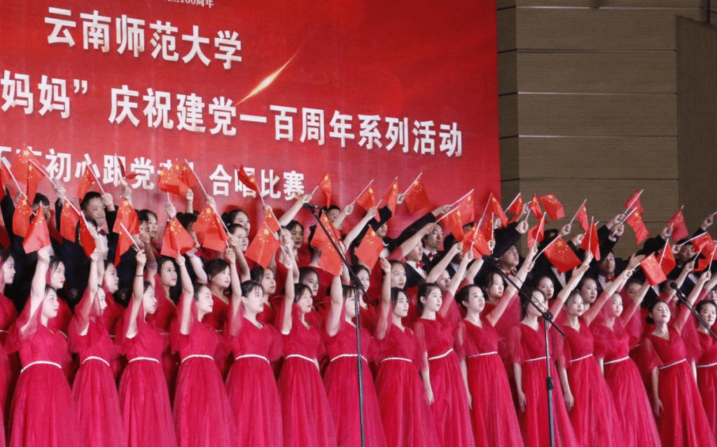 不忘初心跟党走,齐声高歌献祖国。值此建党一百周年之际,云师学子唱响红色经典旋律,为我校师生带来了一场精彩的演出,用坚定的文化自信挺起民族复兴的精神脊梁,共同奏响献给党的赞歌。