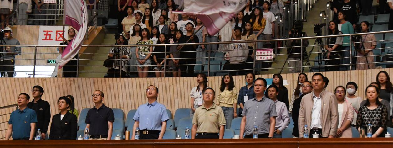 为庆祝中国共产党建党一百周年,加强我校校园文化建设,发挥美育优势,激发我校大学生爱党、爱国热情,2021年5月13日下午,由校团委主办,校学生会、校艺术团承办的“党啊,亲爱的妈妈”庆祝建党一百周年系列活动——“不忘初心跟党走”合唱比赛在呈贡主校区西区体育馆举行。云南师范大学校长蒋永文,副校长刘宗立、蔡金红,校办、组织部、宣传部、教务处、学生处、研究生处、校团委主要负责人,各学院党委副书记、团委书记及学生代表等参加了本次活动。