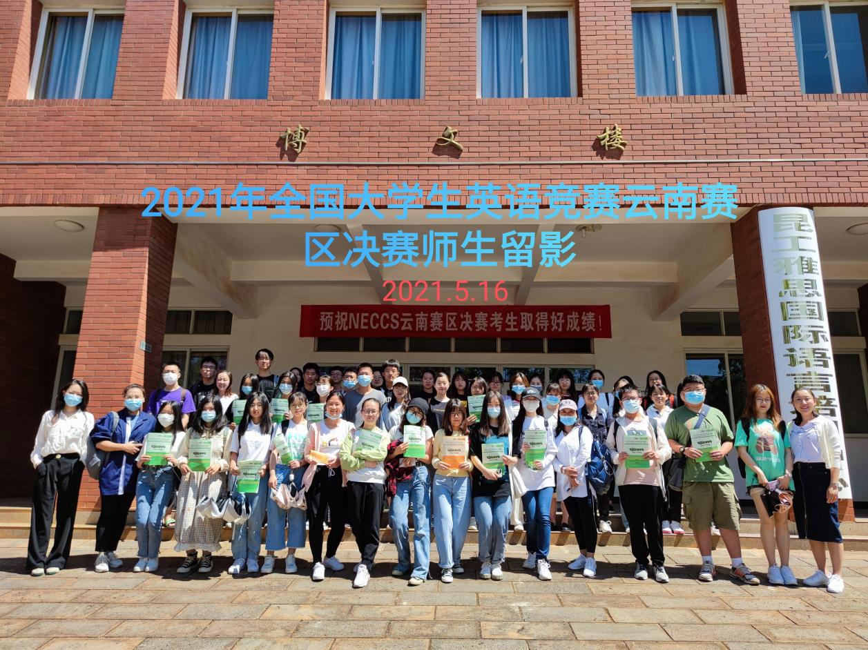 2021年5月16日,我校8名学生赴昆明理工大学呈贡校区参加了2021年全国大学生英语竞赛(NECCS)云南赛区决赛,与来自全省16所高校共计76位选手参加角逐,最终3人获得特等奖,5人获得一等奖;其中,荣获特等奖的两位学生在各自参赛的组别的中排名全省第一。