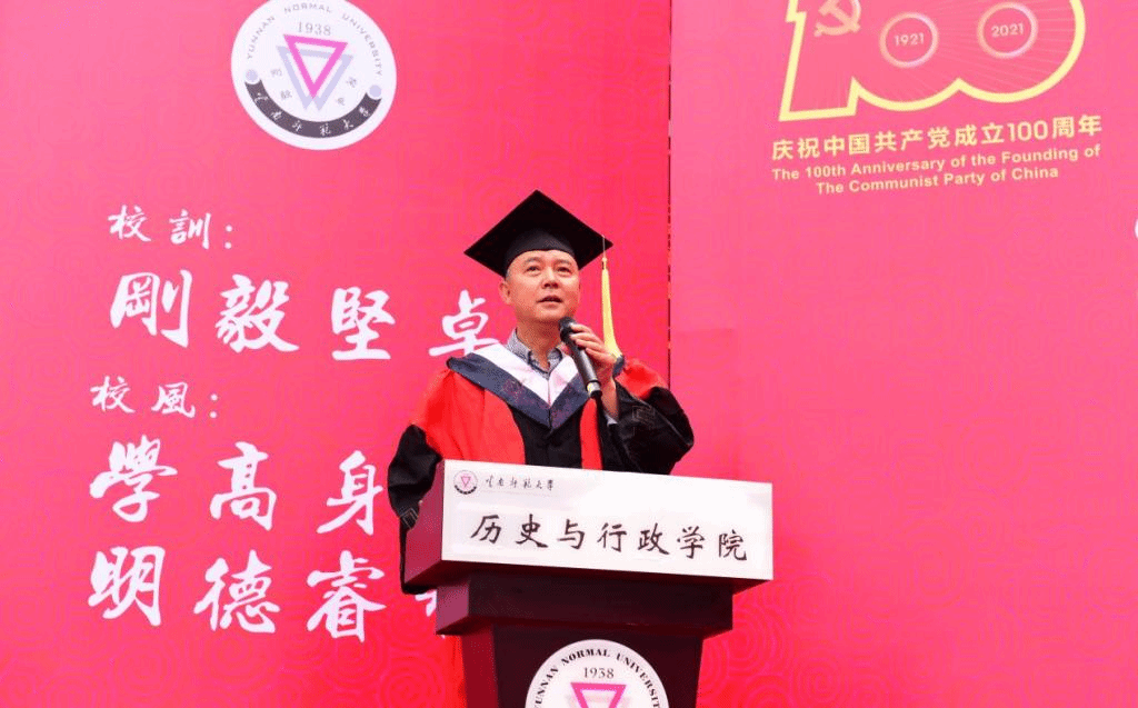 庄严肃穆的国歌声拉开毕业典礼序幕。校党委张玮副书记致辞,向毕业生们表示祝贺,他指出建党100年和新中国成立72年来,我们的祖国逐步迈向繁荣与富强,这样的时代为青年投身国家的建设和社会的发展搭建了广阔的舞台,广大毕业生们要勤学,下得苦功夫,求得真学问;要修德,加强道德修养,注重道德实践;要明辨,善于明辨是非,善于决断选择;要笃实,扎扎实实干事,踏踏实实做人。他希望同学们坚守理想、坚定信念,在将来的学习、工作和生活中牢记青年知识分子的使命,做西南联大精神的传承者,做中国共产党伟大事业的开拓者,做社会主义核心价值体系的传播者,做中华民族传统美德的弘扬者,为国家的发展和民族的振兴贡献力量。