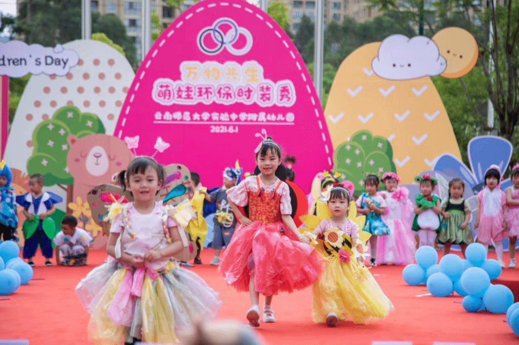 云南师范大学实验中学附属幼儿园结合今年联合国《生物多样性公约》第十五次缔约方大会在昆举行的契机,组织孩子、家长、老师们运用环保材料及废旧物品自主设计制作了各具特色的环保时装,呈现出一场精彩的视觉盛宴。共同树立尊重自然,顺应自然,保护自然的生态文明理念。