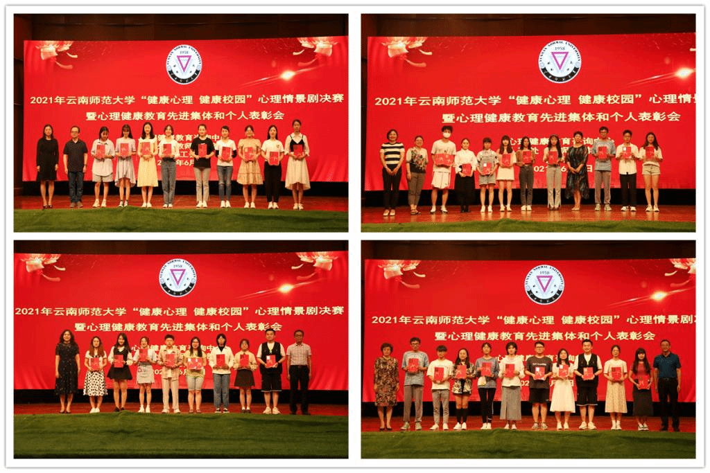 为深入学习贯彻习近平新时代中国特色社会主义思想,全面贯彻落实全国教育大会、全国高校思想政治工作会议精神,不断提升大学生心理健康素质,助力学生健康发展,6月2日下午,我校举行2021年“心健康 心成长 心向党”心理情景剧决赛暨心理健康教育先进集体和个人表彰会,本次活动由心理健康教育咨询中心、人事处(教师工作部)、校工会联合开展,云南省委教育工委学生工作部、校医院、学生处、各学院(学部)师生代表近500余人参与了本次活动。昆明理工大学学生处副处长宋熹,云南师范大学教育学部赵建新教授、校团委书记郑伟俊、研究生处处长黄海涛、音乐舞蹈学院党委书记和红军、马克思主义学院党委书记张健、心理健康教育咨询中心办公室主任尚云担任本次比赛的评委。