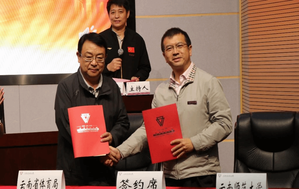 6月10日下午,云南省群众体育发展研究中心揭牌仪式在我校呈贡校区西边中心报告厅举行。云南省体育局张晓憬副局长与我校牛治亮副校长代表双方签署了《云南省群众体育发展合作协议》并为云南省群众体育发展研究中心揭牌。云南省体育局群众体育处处长吕汇慧,云南省体育局相关处室、直属单位负责人,云南省群众体育发展研究中心部分受聘专家以及我校校办、对外合作处、体育学院领导班子及师生代表参加了此次活动。体育学院聂真新院长主持活动。